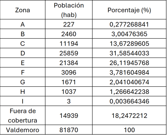 Según el criterio de la Agenda Urbana española, el 51,458% de la población valdemoreña no recibe el servicio mínimo.