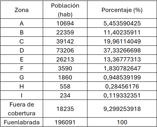 Según el criterio de la Agenda Urbana española, el 25,851% de la población fuenlabrense no recibe el servicio mínimo.