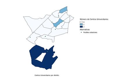 • Universidades (CU). Se consideran las universidades que hay en la zona. Se separa de los Centros de Educación ya que las franjas de edad de estudio son distintas. Se ha formado uniendo las capas 8 y 9.