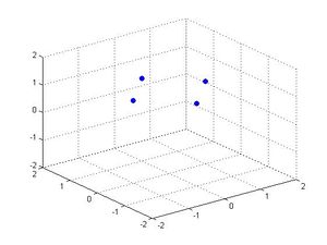 3.4 Visualizacion de un sistema de puntos rotados con eje ω = e1,e2,e1+e2+e3 y angulo θ= π/16