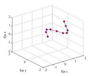 plot3(f(1,:),f(2,:),f(3,:),'o-','MarkerFaceColor','b') % Dibujar las partículas en azul unidas por un alambre