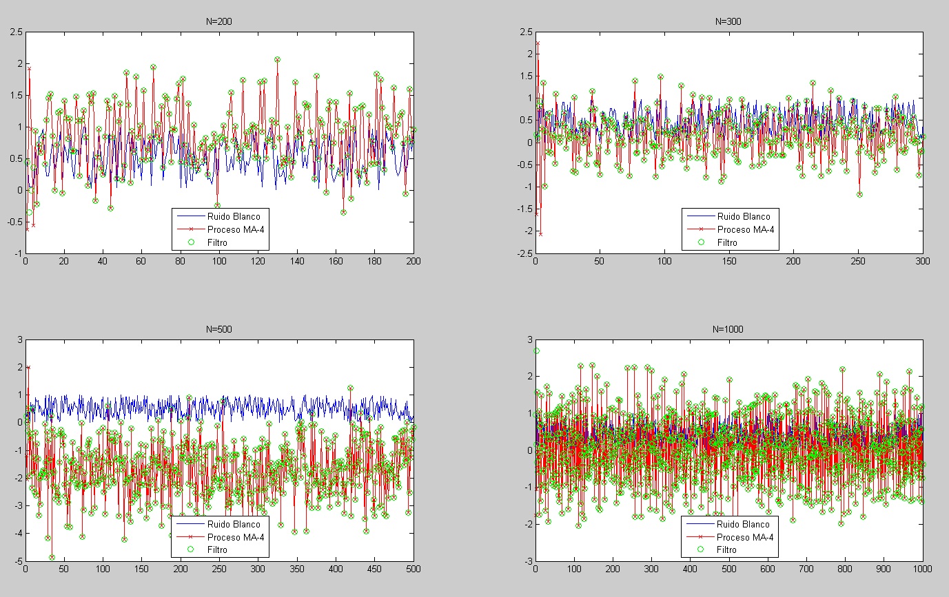 legend('Ruido Blanco','Proceso MA-4','Filtro','Location','South')