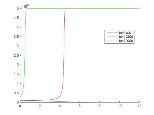 Fig 4: Evolución de la infección para los 3 valores iniciales.
