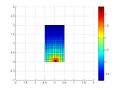 We show how to visualize scalar fields on plane regions, representing solids, with Octave UPM. We focus on the example in Dibujar un sólido 2-D, i.e. the rectangle [math] [-1/2,1/2]\times [0,2][/math] and the scalar field [math] f(x,y,z)=-\log (0.1+\sqrt{x^2+y^2})[/math]. We follow the steps: