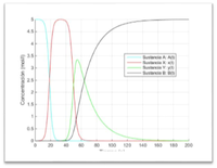 legend('Sustancia A: A(t)','Sustancia X: x(t)','Sustancia Y: y(t)','Sustancia B: B(t)','Location','Best')