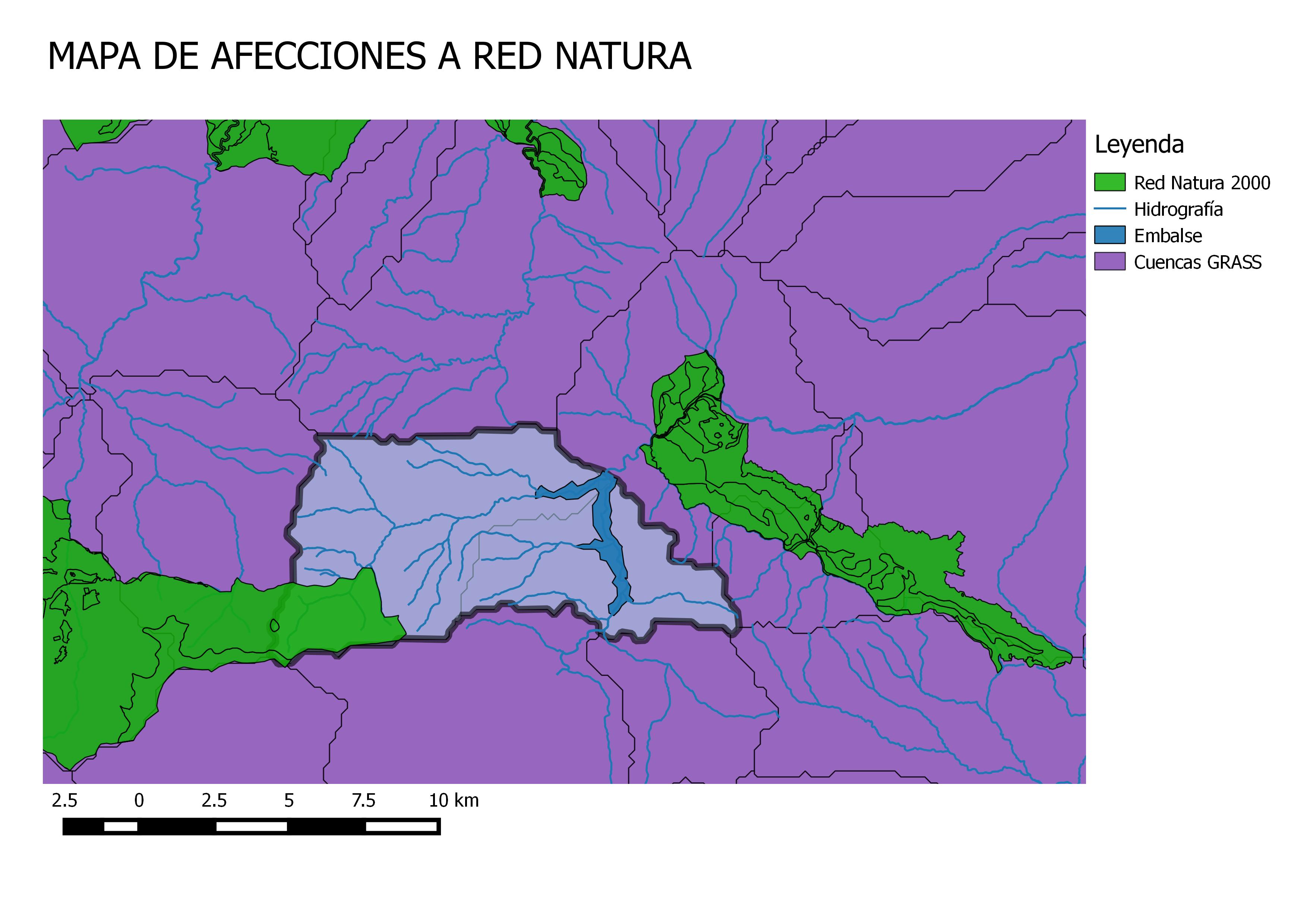 Con todo esto, se ha elegido la cuenca que se muestra en los mapas adjuntos en el Anejo de Planos. Cumpliendo con creces los condicionantes recién descritos, en los mapas se estudiaron las afecciones y la geología como comprobación de la cuenca. Los resultados fueron los siguientes: