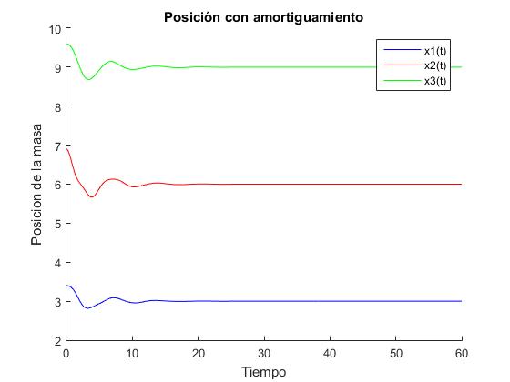 legend('Posición de la masa 1','Posición de la masa 2', 'Posición de la masa 3')