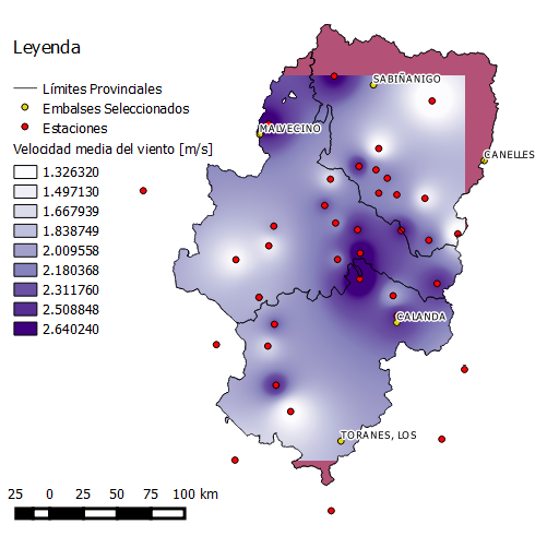 Revisión del 19:42 17 may 2017 de Juan Manuel (Discusión | contribuciones) (Se en esta imagen se resumen los embalses viables para realizar el estudio así como una interpolacion de las velocidades de viento)