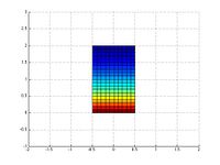 Para poder llevar acabo el objetivo de este trabajo, primero hemos de visualizar la placa rectangular dada, ya que en ella es donde vamos a dibujar los distintos tipos de campos. La mejor forma de visualizar una placa, en nuestro caso rectangular, es a partir del dibujo de un mallado. Esta mallado viene determinado por una región, [math] [-1/2,1/2] \times [0,2][/math], la cual vamos a dibujar introduciendo el siguiente código en Matlab: