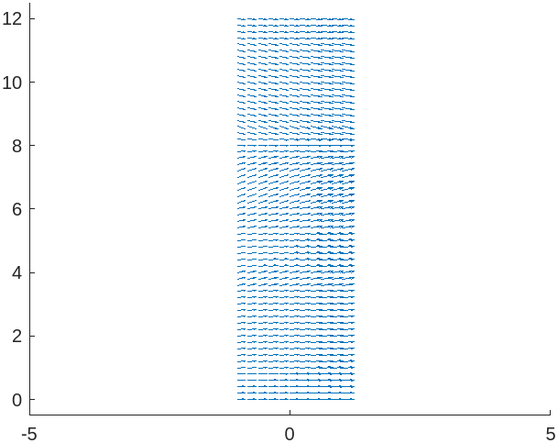 Se pide dibujar el campo de vectores en los puntos del mallado del sólido, en [math] t = 0 [/math].