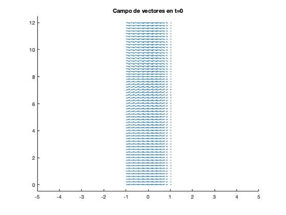 Se pide dibujar el campo de vectores en los puntos del mallado del sólido, en [math] t = 0 [/math].