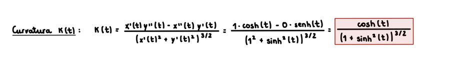 Se tiene la siguiente curva plana parametrizada en coordenadas cartesianas que representa una catenaria: