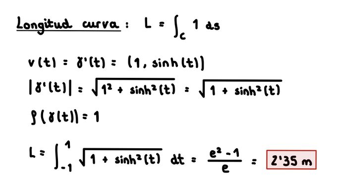[math] γ´(t) = x′(t)\vec i + y′(t)\vec j = \vec i + senh(t) \vec j [/math]
