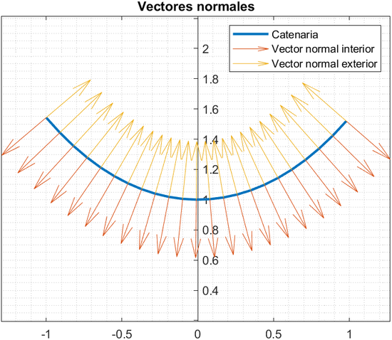 legend("Catenaria","Vector normal interior","Vector normal exterior")