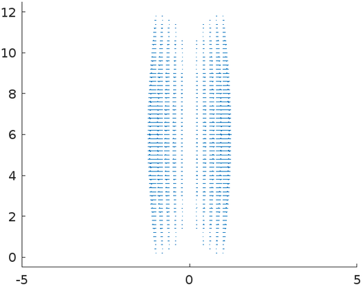 Se pide dibujar el campo de vectores en los puntos del mallado del sólido, en [math] t = 0 [/math].