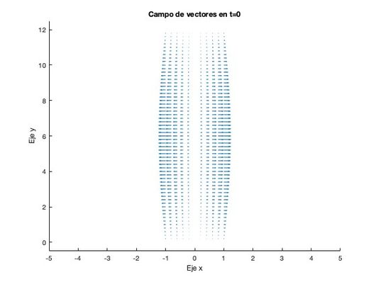 title('Campo de vectores en t=0')