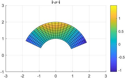 [math]\sigma=\lambda\nabla\cdot\vec{u}1+2\mu\epsilon=\begin{pmatrix} \frac{3}{2}\cdot\frac{-cos(2\cdot\theta)}{3-\rho}+\frac{log(3-\rho)\cdot cos(2\cdot\theta)}{2\cdot\rho} & \frac{-log(3-\rho)\cdot sin(2\cdot\theta)}{\rho} & 0\\ \frac{-log(3-\rho)\cdot sin(2\cdot\theta)}{\rho} & \frac{-cos(2\cdot\theta)}{2\cdot(3-\rho)}+\frac{3}{2}\cdot\frac{log(3-\rho)\cdot cos(2\cdot\theta)}{\rho} & 0\\ 0 & 0 & \frac{-cos(2\cdot\theta)}{2\cdot(3-\rho)}+\frac{log(3-\rho)\cdot cos(2\cdot\theta)}{2\cdot\rho} \end{pmatrix} [/math]