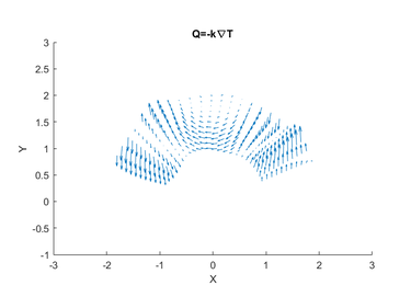 Según la Ley de Fourier, la energía calorífica [math]\vec{Q}[/math] viaja de acuerdo a la fórmula [math]\vec{Q} = −\kappa\nabla T[/math], donde [math]\kappa[/math] es la constante de conductividad térmica de la placa que supondremos κ = 1.