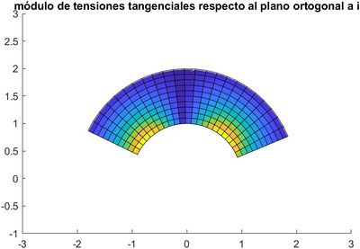 title('módulo de tensiones tangenciales respecto al plano ortogonal a i');10 Tensión de Von Mises