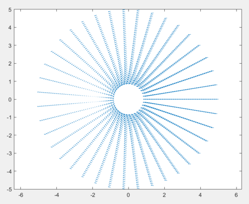 Para hacer una comprobación de ello, se hará una representación del campo de velocidades mediante el siguiente código de Matlab: