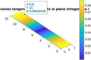 En este apartado, calcularemos las tensiones tangenciales respecto al plano ortogonal a [math]\vec {i}[/math], es decir, [math]|\sigma\cdot \vec{i} - (\vec{i}\cdot \sigma \cdot \vec{i}) \cdot \vec{i}|.[/math]