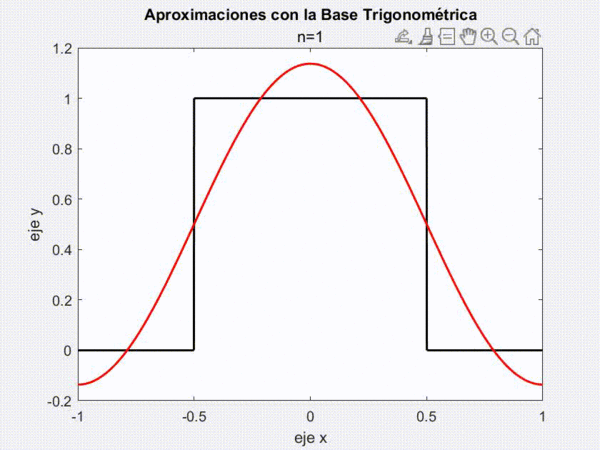 Como podemos observar, el periodo de las funciones [math]\sin[/math] y [math]\cos[/math] se reduce a medida que aumenta el valor de [math]n[/math]. Este aspecto, como veremos más adelante, permitirá mejorar la aproximación de funciones.