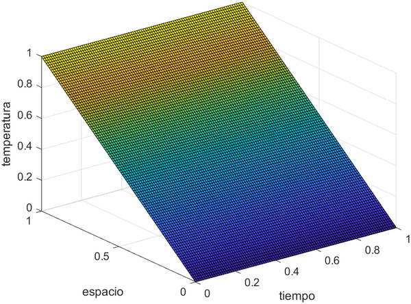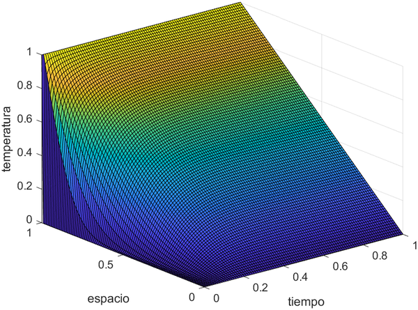 Suponiendo que tanto la conductividad térmica como el calor específico tienen un valor constante [math] 1 [/math], tenemos que el anterior enunciado se ve modelizado por el siguiente sistema EDP: