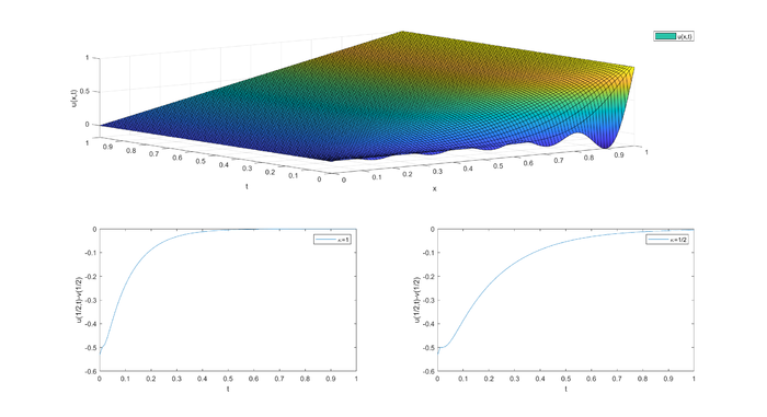 [math]\left \{ \begin{array}{ll} \frac{\partial w}{\partial t}-\frac{\partial ^2 w}{\partial x^2}=0 & \quad 0 \lt x \lt 1, t \gt 0, \\ w(x,0)=-x, & \quad 0 \lt x \lt 1, \\ w(0,t)=0, & \quad t \geq 0, \\ w(1,t)=0, & \quad t \geq 0. \end{array} \right. [/math]