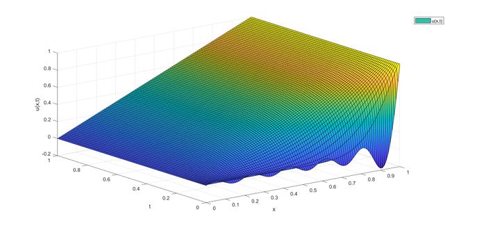 Aproximación de la función u, dibujada para [math](x,t)\in[0,1]\times[0,1].[/math]