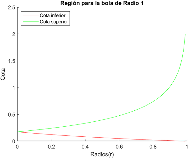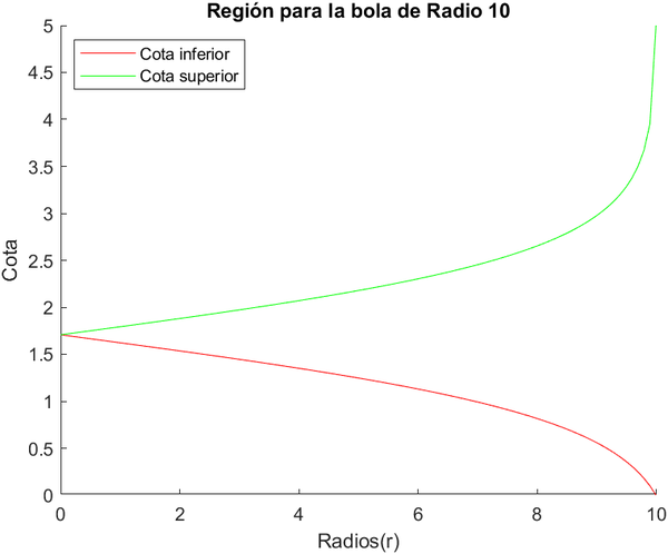 %En este código vamos a representar la región donde deben estar las soluciones a partir de las desigualdades de Harnack para las bolas de radio 1, 2 y 10.