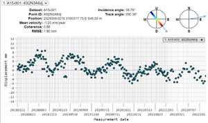 Palacio de Cristal: se está alejando simultáneamente de ambos satélites. Es probable que esto se explique con un hundimiento del mismo, aunque la velocidad a la que lo está haciendo no es muy alta. También destacan ciertos puntos que no tienen mucho sentido físico dentro de la serie histórica, tanto en el ascending como en el descending.