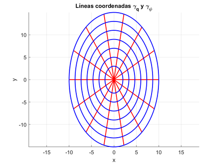 Las líneas coordenadas \(\gamma_q\) y \(\gamma_\psi\) quedan representadas en el siguiente gráfico elaborado con MATLAB: