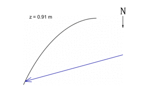 Si, por ejemplo, nos encontramos a la latitud del ejemplo anterior, asumiendo una viscosidad turbulenta de unos 0.1 m2/s, una velocidad del viento de 10 m/s soplando de Norte a Sur, induciendo en la superficie una velocidad aproximada de 0.2 m/s y un desvío aproximado de 45º hacia la derecha respecto a la dirección del viento, se intuye que: