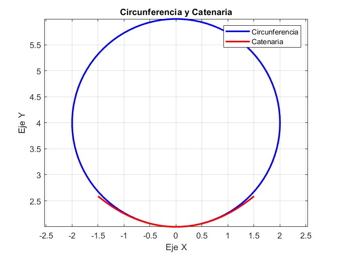 % Dibujar la circunferencia y la catenaria en la misma gráfica