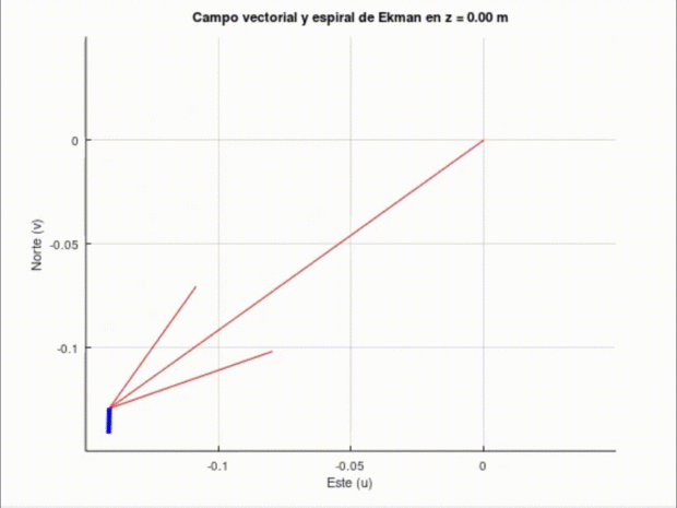 title(sprintf('Campo vectorial y espiral de Ekman en z = %.2f m', z));
