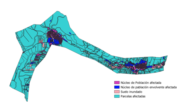 Una vez obtenidos los periodos de retorno, vamos a utilizar el periodo de retorno T500 para ver que núcleos de población, parcelas y edificios son afectados.