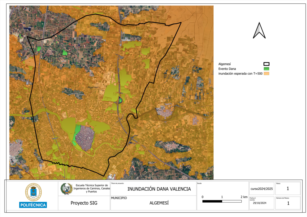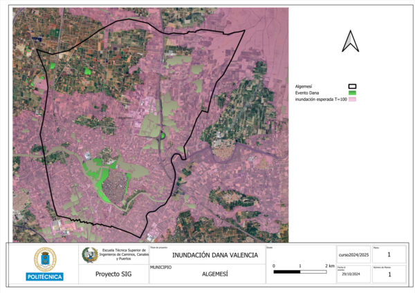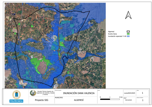 Durante el episodio de la DANA, ambos ríos sufrieron desbordamientos. El río Júcar presentó desbordamientos localizados en ciertas áreas, mientras que el río Magro experimentó un desbordamiento más extenso, afectando de forma significativa las zonas residenciales. Para estudiar estas afecciones, se han empleado datos de múltiples fuentes: Copernicus Emergency, el Instituto Cartográfico de Valencia, el CNIG y el IDEE. En particular, Copernicus Emergency proporciona información detallada sobre la evolución de las inundaciones en toda la región de Valencia, aunque los datos oficiales específicos para Algemesí solo se registraron para el 31 de octubre.