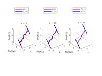 [math]\quad x \mapsto \begin{cases} 4x(\frac{1}{2} + x)^2 + ix \text{ , si } x\in [-1,0]\\ 4x(\frac{1}{2} - x)^2 + ix \text{ , si } x\in [0,1] \end{cases} [/math]