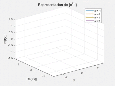 Esta representación nos permite, tomando una suma parcial de la serie, aproximar a [math] f [/math]. Sin embargo, la base trigonométrica no se presta a la aproximación de funciones de variable real y valores complejos. Esta carencia nos lleva a la base trigonométrica compleja: considerando seno y coseno complejos, somos capaces de aproximar funciones de variable real y valores complejos o reales indistintamente. Esta base, con dominio [math] [-\pi,\pi] [/math]