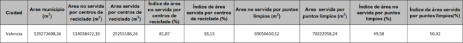 Tabla X - Índices de puntos limpios y centros de reciclado de la ciudad de Valencia