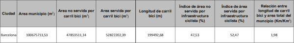 Tabla X - Índices del carril bici de la ciudad de Barcelona