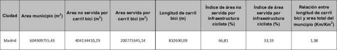 Tabla X - Índices del carril bici de la ciudad de Madrid