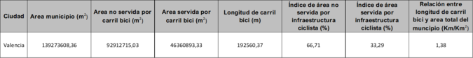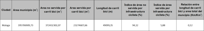 Longitud del carril bici: 832 690,09 [math] m [/math] Área no servida por el carril bici (300 metros): 404 134 410,29 [math] m^{2} [/math]