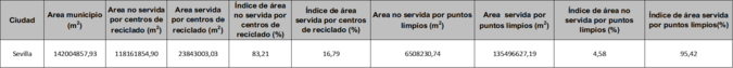 Tabla X - Índices de puntos limpios y centros de reciclado de la ciudad de Sevilla