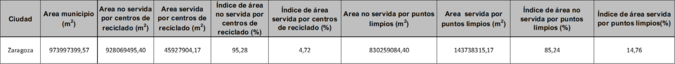 Tabla X - Índices de puntos limpios y centros de reciclado de la ciudad de Zaragoza