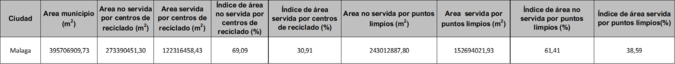 Tabla X - Índices de puntos limpios y centros de reciclado de la ciudad de Malaga