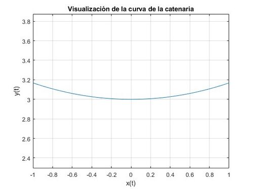 A lo largo de este artículo científico se realizará un estudio matemático de la curva de la catenaria apoyado del software científico de visualización MATLAB. La catenaria da nombre a la curvatura que describe un cable suspendido por sus dos extremos y condicionada únicamente por una fuerza gravitatoria uniforme. Esta curva natural tiene unas propiedades físicas interesantes por su eficiencia energética y un diseño estético. En este documento se analizan sus características fundamentales de interés matemático y físico y se muestra cómo los ingenieros han hecho uso de esta curva en sus proyectos.