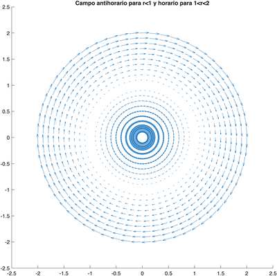 title('Campo antihorario para r<1 y horario para 1<r<2');