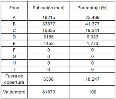 • Tabla6. Población de Valdemoro según la cobertura de las zonas de calidad.