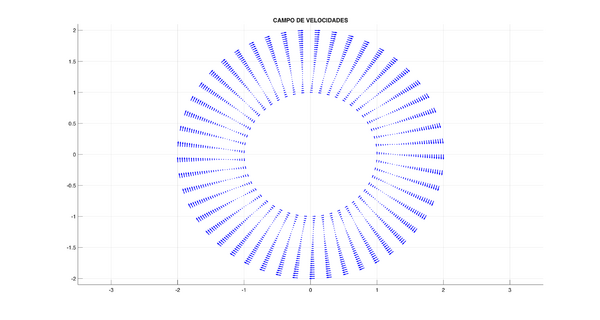 Hemos calculado las constantes a y b, desarrollamos la ecuación. Quedando el campo de velocidades la las partículas como:
